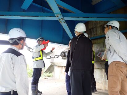班に分かれ、3箇所でそれぞれ橋梁の基礎知識と点検について学びました。