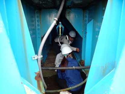 川の中央に近い場所の構造物を間近で見たり叩いたりするためには、