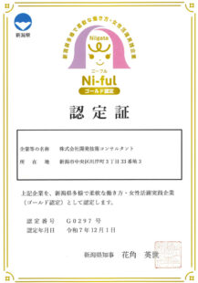 「新潟県多様で柔軟な働き方・女性活躍実践企業認定制度」において、